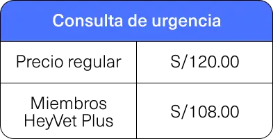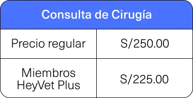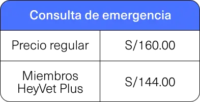 Tipo de consulta | Precio regular | Precio para miembros HeyVet Plus |