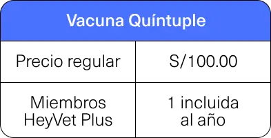 Vacuna Quíntuple | S/100.00 | 1 incluida al año |