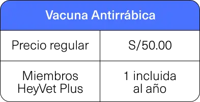 Vacuna Antirrábica | S/50.00 | 1 incluida al año |