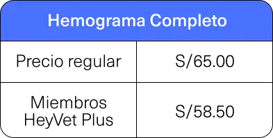 Tipo de prueba | Precio regular | Precio para miembros HeyVet Plus |