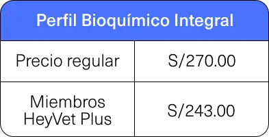 Perfil Bioquímico Integral | S/270.00 | S/243.00 |