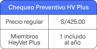 Chequeo preventivo HeyVet Plus | S/425.00 | 1 incluido al año |