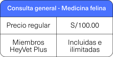 Consulta general - Medicina felina | S/100.00 | Incluidas e ilimitadas |
